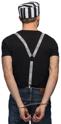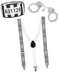 Asustesetti sisältää hatun, henkselit ja käsiraudat.