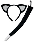 Kissan asusetti; kokonaisuuteen kuuluu musta panta sekä häntä, jonka päässä valkoinen tupsu. Korvat ja häntä on ihanan pehmoista materiaalia.