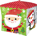 Kuution mallinen 4 eri paneelista koostuva foliopallo. Joka sivulla eri kuva.