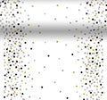 Valkoinen kaitaliina mustilla, kullan -ja hopeanvärisillä pilkuilla. Rullassa on 4,8 metriä 40 cm leveää liinaa. Kestävä kertakäyttöinen liina on Dunin Dunicel -materiaalia. Materiaali on pehmeää, sileää ja hyvin laskeutuvaa.