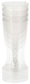 Tämä pakkaus sisältää 4 kirkasta muovista viinilasia, joiden tilavuus on 160 ml. Lasit ovat kaksiosaiset (jalka ja malja), ja ne on helppo koota ennen tarjoilua. Ne seisovat tukevasti pöydällä ja sopivat mainiosti viinin lisäksi myös muille juomille, kuten cocktaileille tai jälkiruokajuomille.