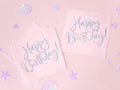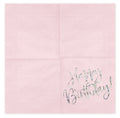 Happy Birthday suuri lautasliina vaaleanpunainen hopealla tekstillä