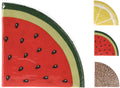 Lautasliinoissa kolme eri kesäistä kuviota: vesimeloni, sitruuna ja juuttitabletti.