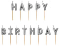 Kakkukynttilät Happy Birthday hopeanvärinen 2,5 cm