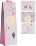 Jouluinen pullolahjakassi koko 36 x 12 x 10 cm, kolme eri mallia.