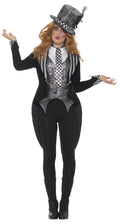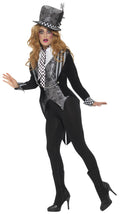 Tyylikäs ja omaperäinen Tumma Neiti Hatuntekijä Deluxe -asu tuo synkän satumaailman hahmon eloon! Asuun kuuluu näyttävä mustan sävyinen takki yhdistettynä liivillä ja paidalla, rusetti sekä upea hattu, jotka yhdessä tekevät asusta unohtumattoman. Yksityiskohtainen ja laadukas kokonaisuus sopii täydellisesti Halloween-juhliin, naamiaisiin ja teemabileisiin. Tämä deluxe-asu on oikea katseenvangitsija, joka yhdistää sadun ja goottityylin – täydellinen valinta, kun haluat erottua joukosta dramaattisella ja mystisellä lookilla.