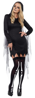 Näyttävä ja rohkea viikatemiehen mekko muuttaa klassisen kauhuhahmon vietteleväksi versioksi! Asuun kuuluu musta mekko, jossa siksak-reunainen helma ja huppu, joka tuo mystistä dramatiikkaa kokonaisuuteen. Asu sopii täydellisesti Halloween-juhliin ja naamiaisiin, kun haluat yhdistää pelottavan ja houkuttelevan tyylin. Helppo yhdistää esimerkiksi viikatteeseen tai muihin kauhuteemaisiin asusteisiin, joilla saat entistä vaikuttavamman lookin.