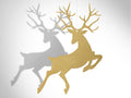 Paperikoriste Petteri Punakuono 10 kpl/pkt. Porot on tehty helmiäishohtoiselle kultaiselle paperille ja niissä on reiät ripustusta varten. Poron koko 9,4 x 14,5 cm.