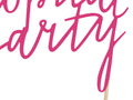 Pahvinen kakunkoriste "Tropical Party" -tekstillä. Koristeen korkeus noin 24 cm.