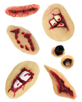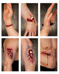 Luo aidon näköisiä kauhuefektejä hetkessä tällä lateksihaava-lajitelmalla! Pakkauksessa on 1 lateksista valmistettu haava, ja valikoimasta löytyy kuusi erilaista vaihtoehtoa: tikattu viilto, repaleinen syvä haava, ulkonevat luut, ammottava viilto sekä pienemmät veren ja kudoksen paljastavat vammat. Jokainen haava on yksityiskohtaisesti muotoiltu ja helppo kiinnittää iholle erikoistehosteliiman tai iholiiman avulla. Täydellinen lisä zombimeikkiin, kauhuteemaisiin asuihin, Halloween-juhliin, cosplayhin tai näyttämöesityksiin. Yhdistä tekovereen entistä karmivamman lopputuloksen saavuttamiseksi!