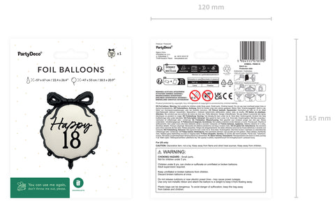 Tee 18-vuotisjuhlasta ikimuistoinen tällä tyylikkäällä Happy 18 -foliopallolla! Näyttävä pienmuoto foliopallo on täydellinen koriste täysi-ikäisyyden juhlistamiseen – olipa kyseessä kotijuhla, yllätysjuhla tai juhlatila. Pallossa on teksti "Happy 18" ja se on sävyltään elegantti beige ja musta, tuoden juhliin modernia tyyliä ja näyttävyyttä.