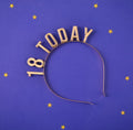 Kullanvärinen metallinen pääpanta synttärisankarille. Pannassa kirjaimet : 18 Today