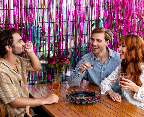 Tuo kasinotunnelma juhliisi tällä hauskalla ruletti-juomapelillä! Pelin mukana tulee 30 cm:n rulettipyörä, 16 lasista shottilasia ja 2 metallikuulaa. Pyöräytä rulettia ja katso, mihin numeroon kuula pysähtyy – se määrittää, kuka juo ja kuinka paljon. Täydellinen valinta illanistujaisiin, syntymäpäiville tai polttareihin.