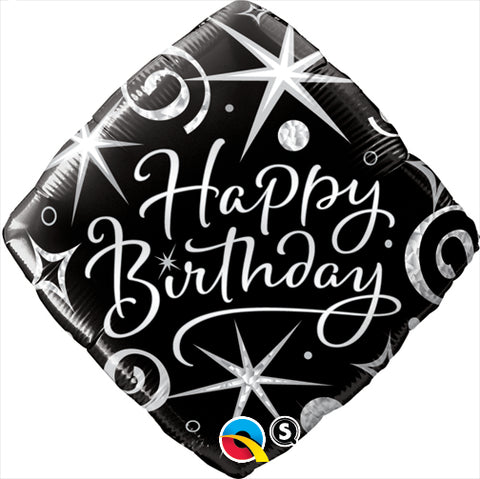 Tyylikäs ja elegantti viestifoliopallo. Väri musta, jossa teksti Happy Birthday ja kuviot hopealla. Voidaan täyttää Helium-ilmapallokaasulla. Pallon koko täytettynä on noin 35-40 cm. Heliumilla täytettynä pallo leijuu ilmassa noin viikon. Foliopalloissa on automaattiventtiili, joka mahdollistaa myös pallon tyhjentämisen ja täyttämisen uudelleen.