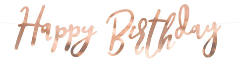 Happy Birthday kirjainnauha ruusukulta 16 x 62 cm