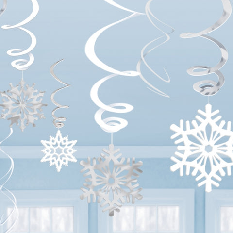 Lumiuhiutalekierrekoristeet. Paketissa yhteensä 6 kierrekoristetta. Kolme kierrekoristetta on halkaisijaltaan 12,7 cm lumihiutaleella, joissa kierre on hopeanvärinen ja lumiuhiutale valkoinen. Kolme lumihiutaletta on 17,7 cm halkaisijalla, joissa valkoinen kierre ja hopeanvärinen lumihiutale.