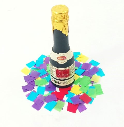 Kuohuviinipullo konfettitykki. Suositellaan käytettäväksi ulkotiloissa. Toimii paineilmalla eli ei ole ilotulite. Toimii kääntämällä korkkia. Sisällä erivärisiä paperiliuskoja, jotka eivät sisällä foliota.