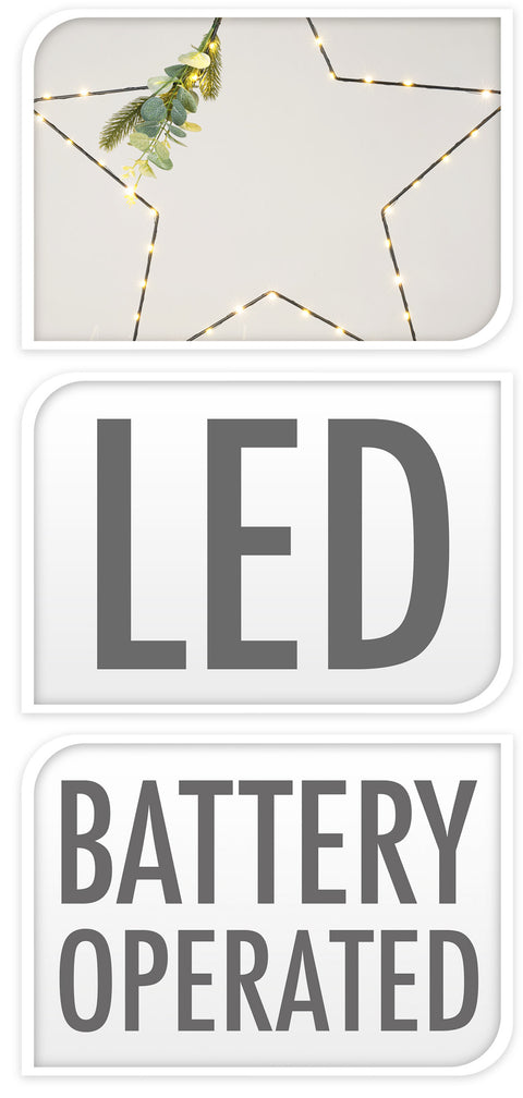 Musta ripustettava koristetähti, jossa 45 kpl LED-valoja. Tähden koko on 62cm.