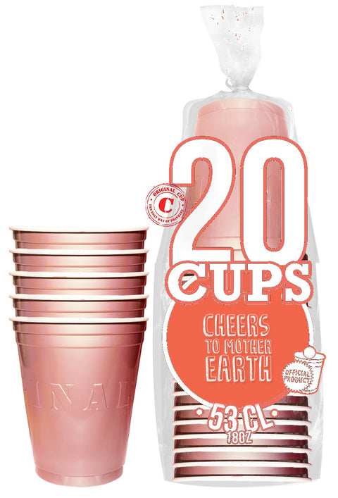 Pakkauksessa on 20 kpl tukevia, tiskikoneen kestäviä, uudelleen käytettäviä muovimukeja. Mukin tilavuus on 530 ml.