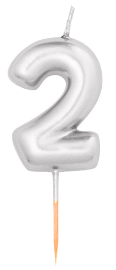 Hopeanvärinen numeron 2 muotoinen kynttilä