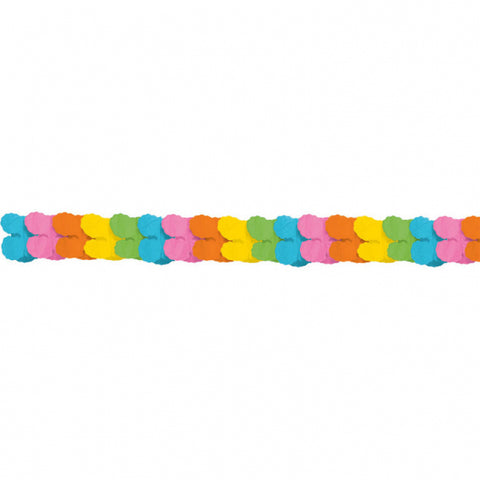 Paperinen köynnöskoriste, monivärinen. Väreinä oranssi, keltainen, vaalean vihreä, sininen ja pinkki. Köynnöksen päissä on pahviset kiinnityskohdat narulle tai vastaavalle. Pakkaus ei sisällä kiinnitystarvikkeita.