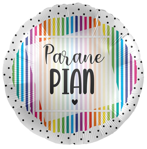 Värikäs raidallinen foliopallo Parane Pian -tekstillä