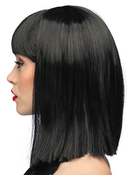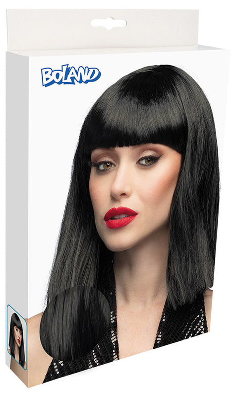 Peruukki musta puolipitkä otsahiuksilla
