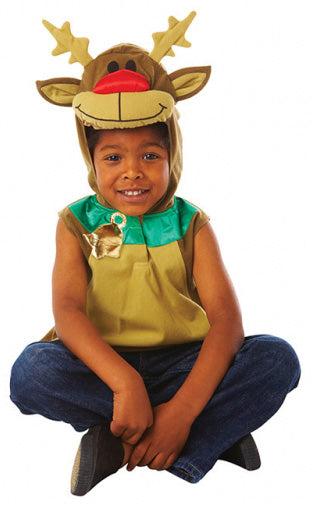 Petteripunakuonon asu pienille poroille. Päänylivedettävä poron puku jossa tarranauha pitää kuluksen kauniisti kiinni. Hupussa Petteri Punakuonon kasvot punaisella nenällä. Asun pituus olkasaumasta helmaan on noin 42 cm