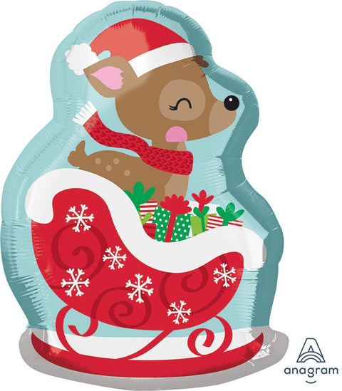 Pakkauksessa yksi joulupukin reen muotoinen foliopallo. Heliumilla täytettynä pysyy ilmassa noin viikon. Koko 38 x 53 cm.