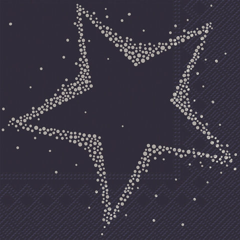 Pakkaus sisältää 20 kpl paperilautasliinoja. Lautasliinan koko on avattuna 33 x 33 cm. Lautasliinat ovat tummansinisiä joissa hopeanvärinen tähti keskellä.