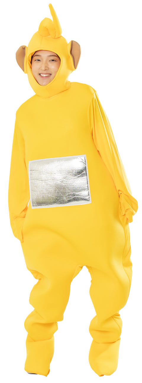 Kestosuosikki Teletapit! Teletappi-asun pakkaus sisältää keltaisen hupullisen yhdenkoon haalarin. Loistava valinta penkkareihin tai teemajuhliin.